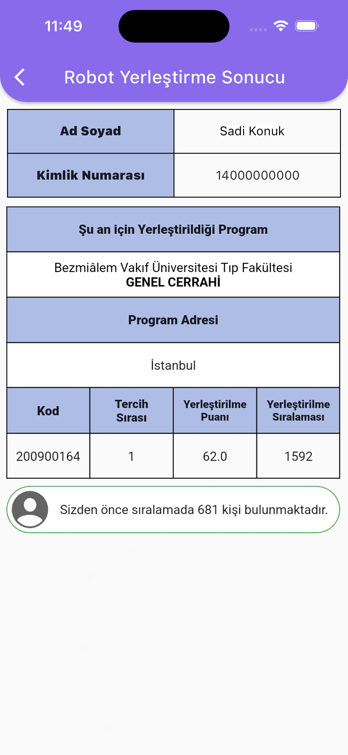 Tahmini TUS Puanım