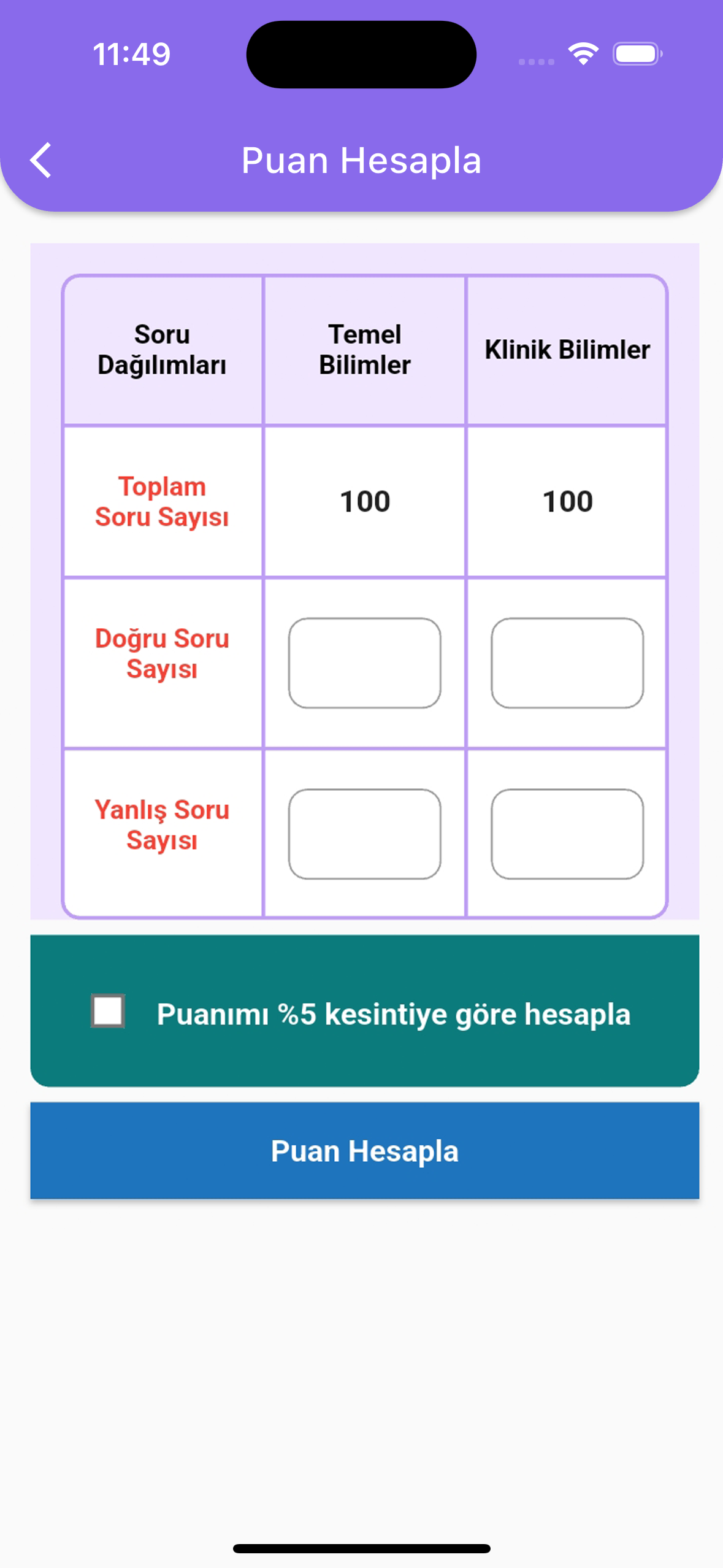 Puanımı %5 kesintiye göre hesapla